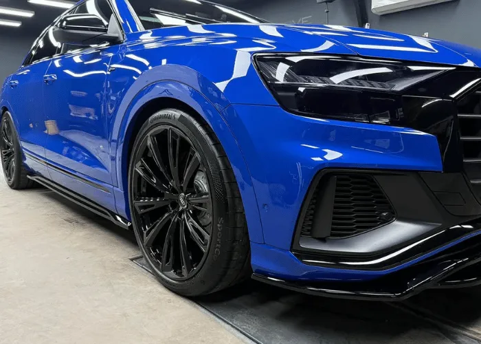 Daarna wordt een aangepaste polijstbehandeling uitgevoerd om de hoogst mogelijke glans te bereiken, oppervlakkige krassen in de lak te verwijderen en de koplampen te polijsten voor betere zichtbaarheid en een stralendere uitstraling.